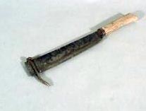 ビート収穫では、耕作プラウのようなビートリフターで浮き上がらせてから、腰にロープをつないでこのカニ爪にかけて引き抜いた。