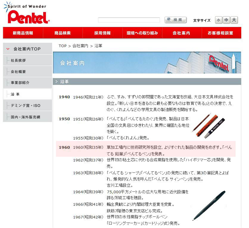 ぺんてる、のHPにその歴史もある。最近の製品とも遜色がない。