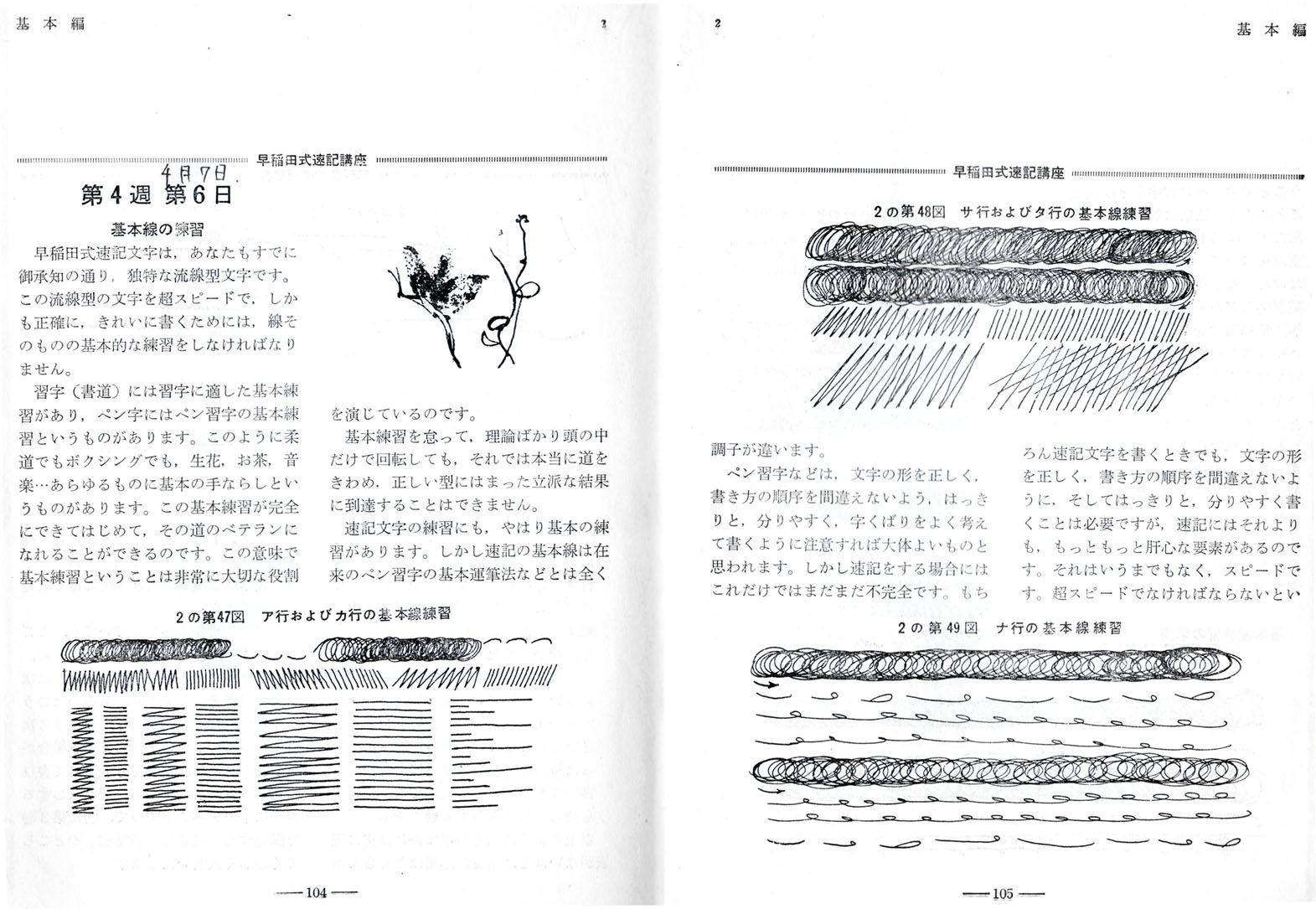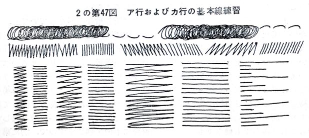 同じ円弧を使ってもその長さが違うと文字が違う。その為に運筆でそれぞれの単位の長さを「猛烈に練習」体得してスピードと正確さを確保する。テキストの七部を紹介。
