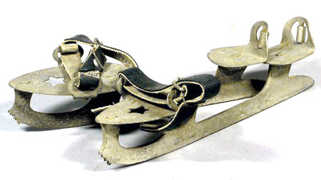 | 雪スケートを長靴に取り付けて小学校の通学に利用した。当時は今より雪が多く、道路は圧雪で学校まで行けたのである。横滑りを防ぐために父親の「三角やすり」で刃の裏に溝を掘っていた。 | 5年からの担任教師の土門先生の指導で、人形作りをして村の映画館で人形劇をした。新聞紙と糊で作って、眼はピンポン玉を使う。猿の顔を似せようとして作るもうまくいかず。若くしてなくなった翠(みす)女子はイメージ写真のような具象化した人形を作って、髪も毛糸で。そっくりに作ることしか頭になかった自分は彼女に強烈なショックを受けた。 | ||||