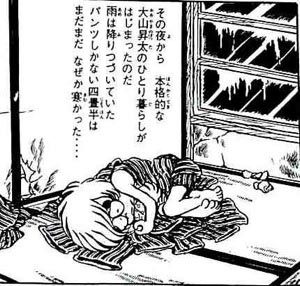 松本零士「男おいどん」は4畳半、小生は4畳間、サルマタケの押入れは1畳だがこちらは半畳。18リッター灯油を1ヶ月持たせるために2畳に仕切って、夜はラーメンをかじってお茶か、スキムミルクを飲んでいた。