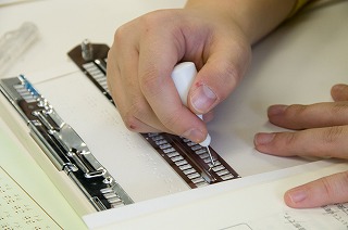 * 「日本点字図書館」 何かもっと世の中の役に立つ仕事をしなくては。そんな思いから こちらの通信講座を受ける。 50音など比較的覚えやすいが、文字間隔などのルールが難しい。 「怒りの葡萄」を点訳しながらそのハードさと時間に挫折。 |