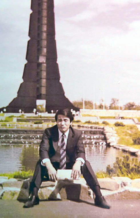 | ↓ 数少ない、女性に囲まれての記念写真。マスクなしで失礼。 | ↓ 少し背広が板についてきた時代。 | ||||