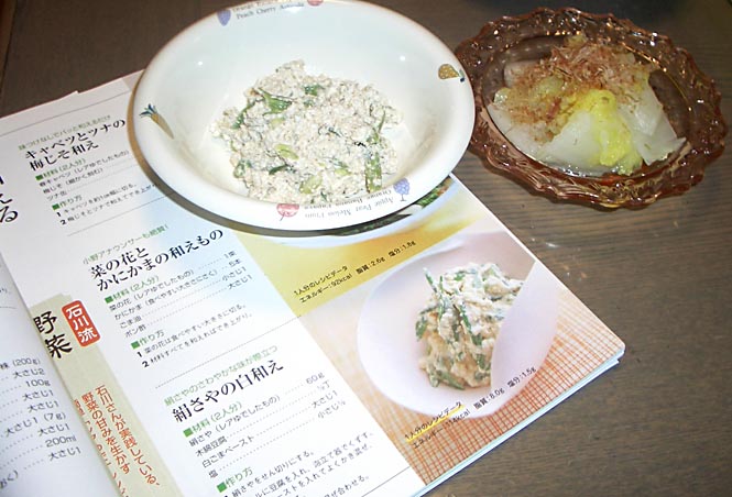 料理の本(右写真)を参考に、付け合せは長イモです。
