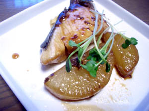 こういう名前の料理。ネットで「ブリ大根 レシピ」でのそのままです。大根は二度茹でになります。 |