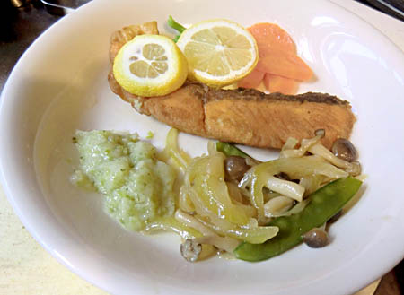 と、こだわって作っても、ただの焼き魚としてしか感じてもらえずか。//ムニエルとは魚を小麦粉をまぶしてバターで焼くものというフランス語、レモン汁をかけるのは好みでは。
