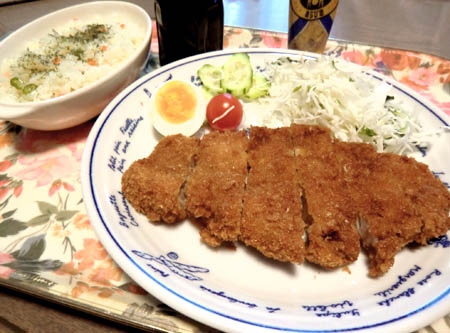 安いカツ用豚肉でもおいしくいただけます。何度か挑戦、ビネガーを使うと焼いた肉も柔らかくなり、脂っこくなくナイフとフォークで。