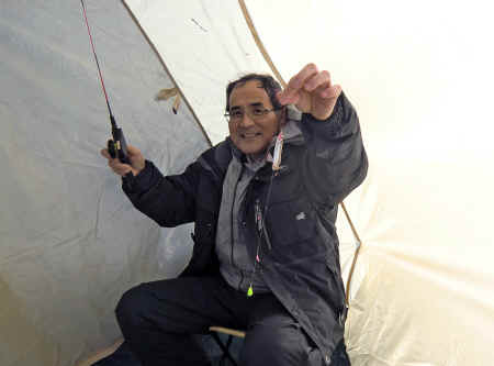高橋さんにはアイスドリルからストーブや水。釣り道具にしかけまで用意戴き、事前調査もやっていただいてご苦労かけました。牧野さんにはテントを壊してまで。