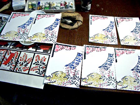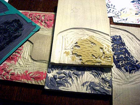色別に版木を作ります。5色にて5枚必要になります。黒はゴム板を使いました。
