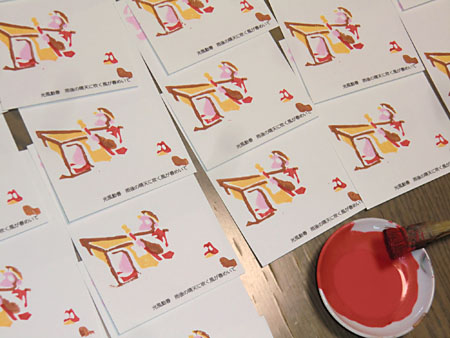 ようやくてん刻印を押します。正規の因泥は渇きが悪いのでスタンプインクです。