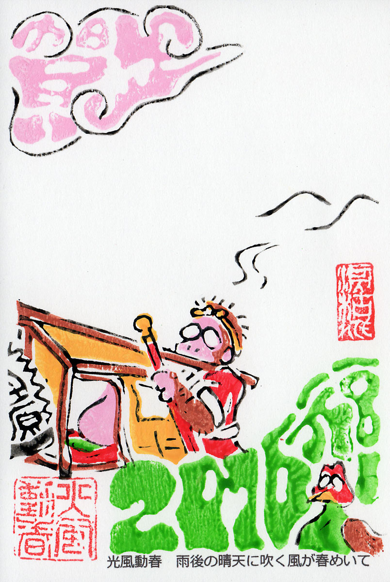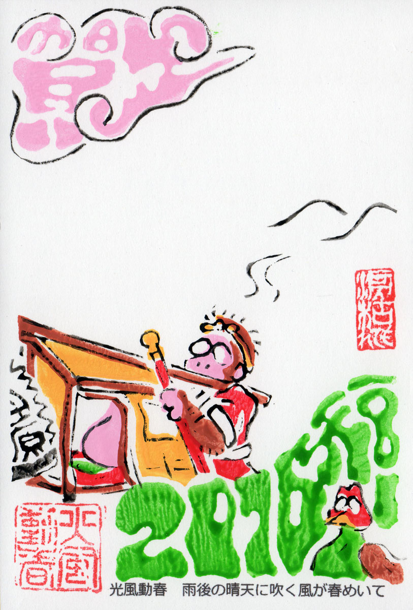申年の年賀のイメージと綾野流版画で正月のポエムになってくれればと。