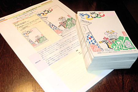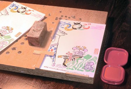 五輪マークを優先としたもの。何とかストーリーにあわせて、ねずみが穴をあけた蔵のイメージとした次第。