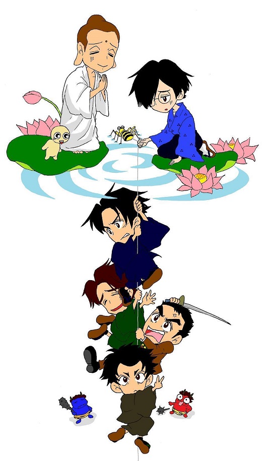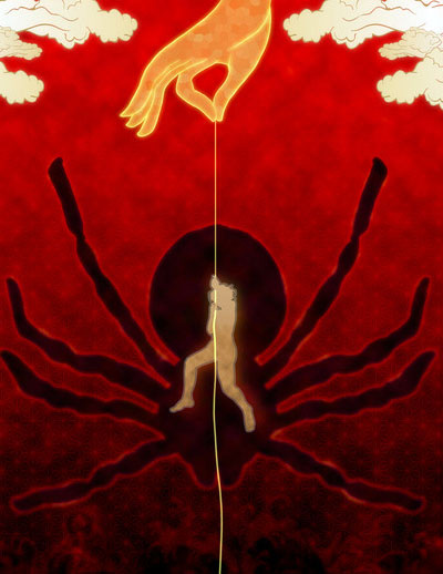 芥川龍之介の「蜘蛛の糸」は読んでいません。なぜか頭から離れず、年賀にしたらどうなるか、でした。
