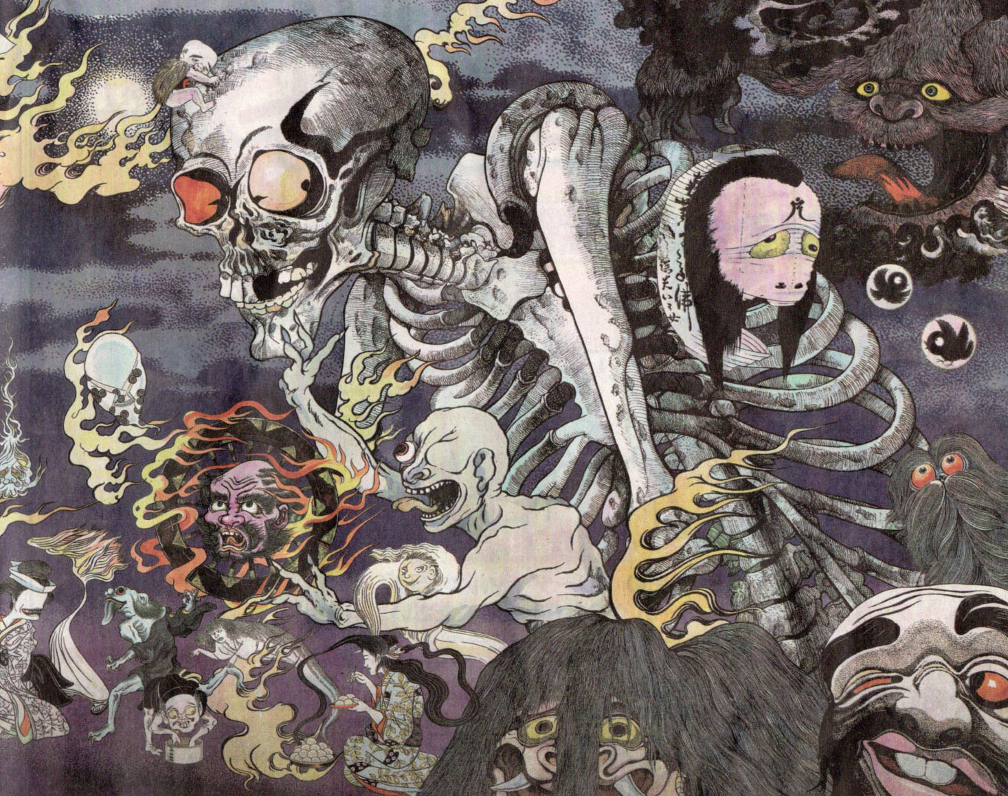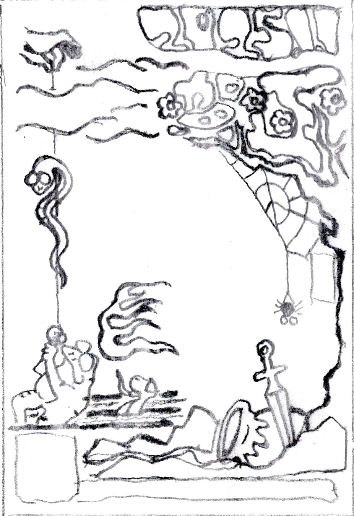 まず、地獄は新年の門出にイメージ悪くどう表現するか、平和のシンボルも何とか入れたいとの思いから最後に蜘蛛の巣に